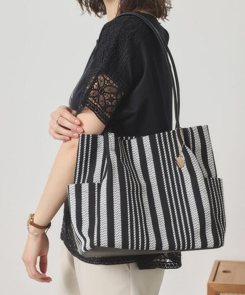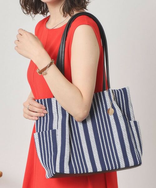 爽やかなストライプ生地を使用したタックトート。