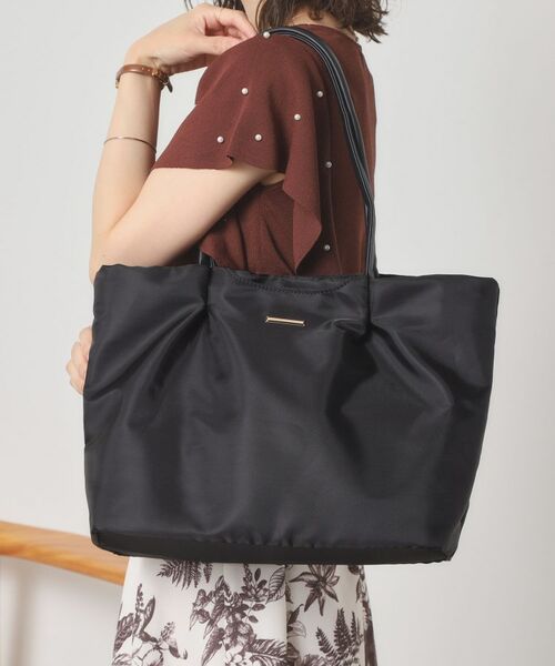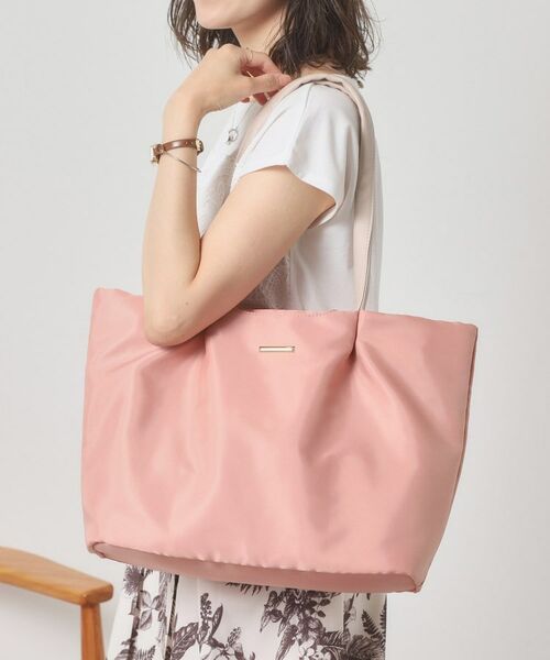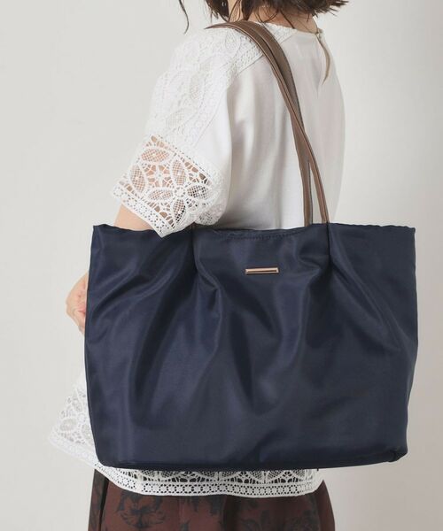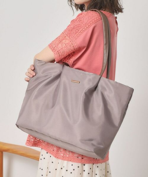 合皮とポリエステルのコンビデザインでオンオフ使いやすいA4トート。