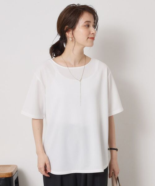 夏の暑い時期にさらっと着られる、カジュアル感ときちんと感のいいとこ取りしたTブラウス。
