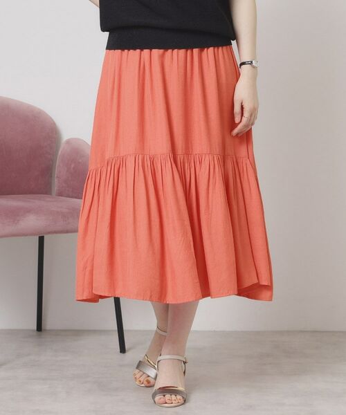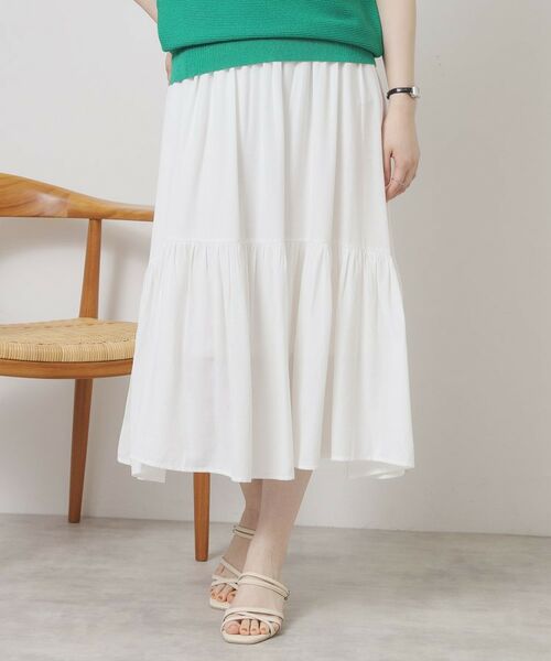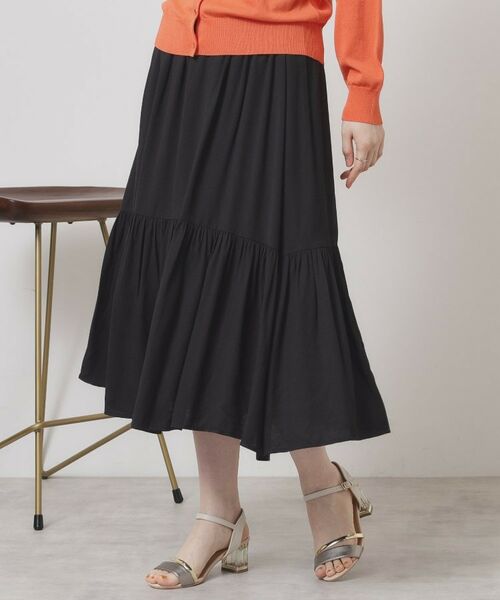 ティアードデザインが足元をふわっとエレガントに演出してくれるロングスカート。