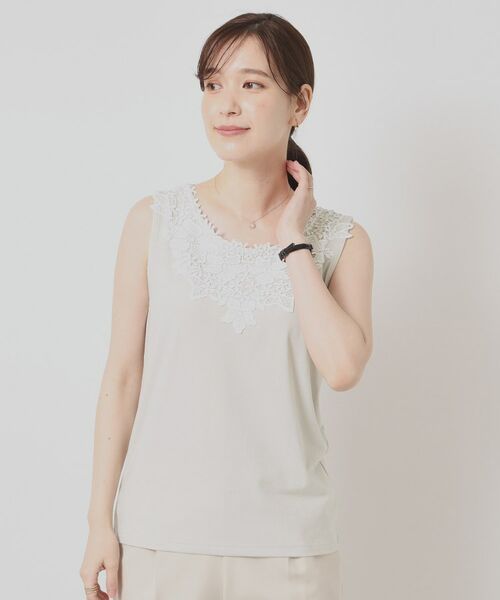 胸元に華やかなレースをあしらったデザインで、シンプル過ぎずコーディネートのアクセントになります。