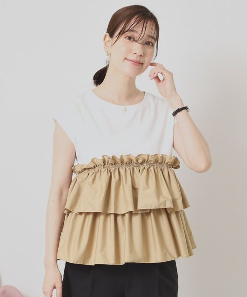 天竺ジャージー素材の身頃に、程よくハリ感のある布帛素材を重ねています。