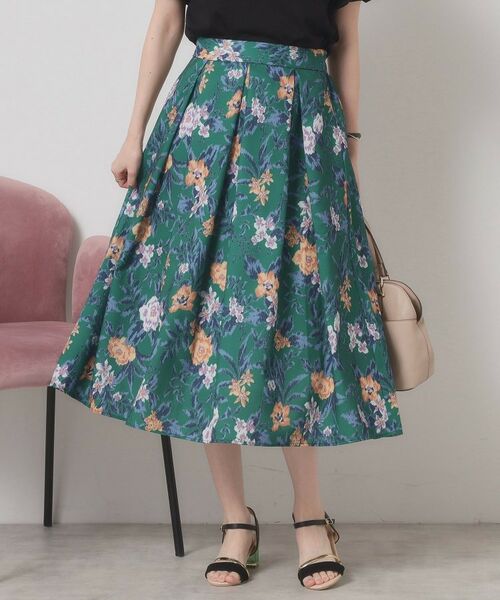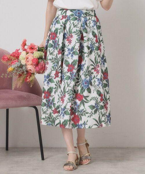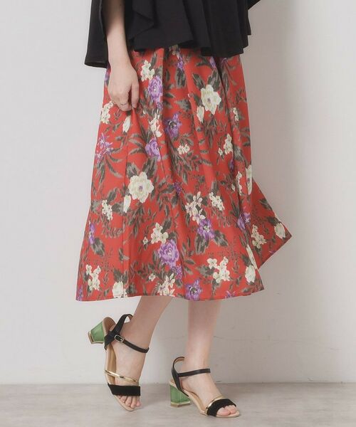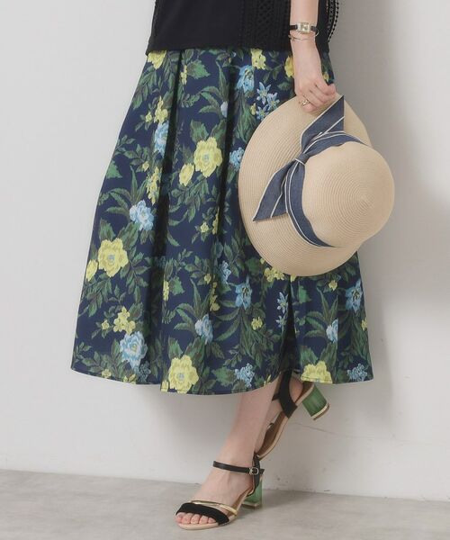 夏の日差しに映えるカラフルで鮮やかな花柄スカート。