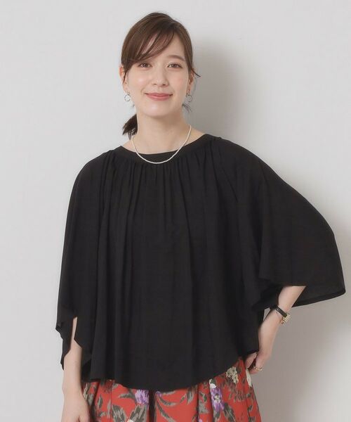 レーヨン混の薄手でとろみのある素材を使用しているので、たっぷりの分量感でも軽やかな印象に。