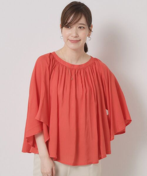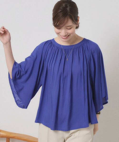 たっぷりの分量感のフレアー袖にゆとりのある身頃のシルエットで、リラックス感のある着心地。