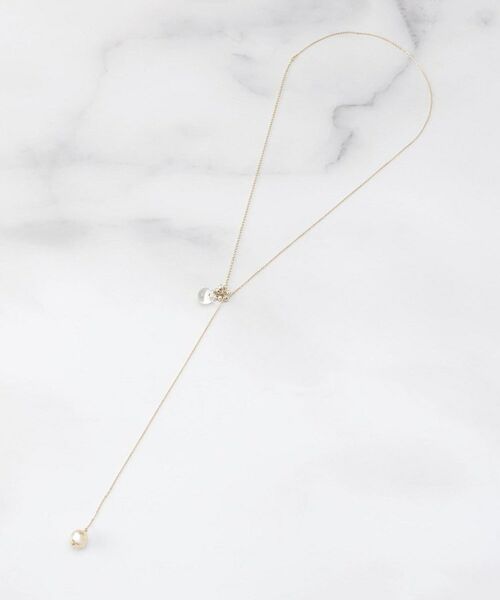 トレンドのクリア玉とメタルツブのY字ネックレスです。