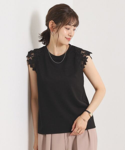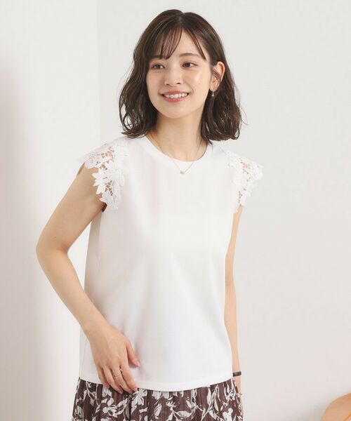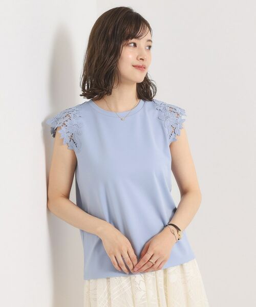 フレンチスリーブですが、レースの装飾で気になる肩回りをカモフラージュ。
