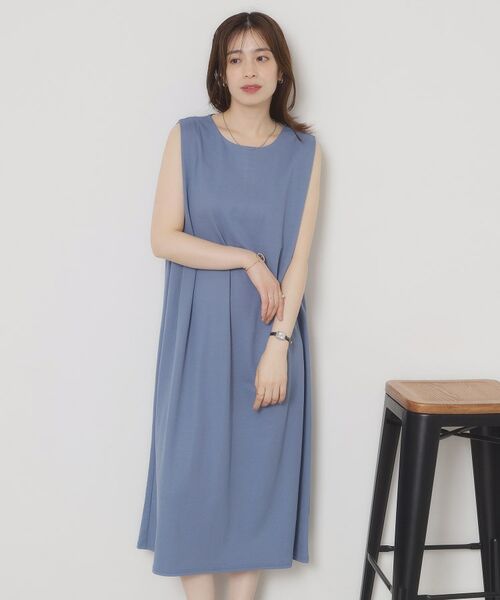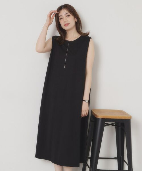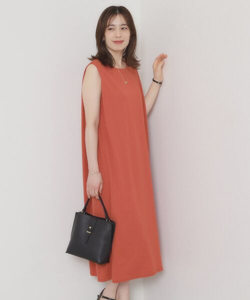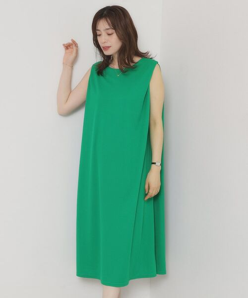 ストンと落ちるすっきりシルエットですが、ヒップから裾まではゆとりがある為、身体のラインを拾いにくいデザインになっています。