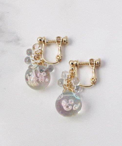 まるで泡のようなデザインの、マーブルカラーがかわいいイヤリングです。