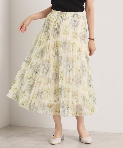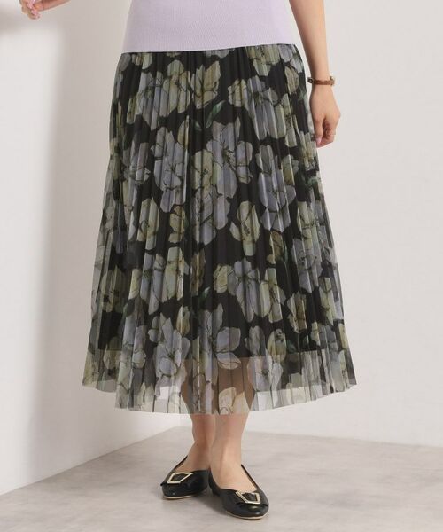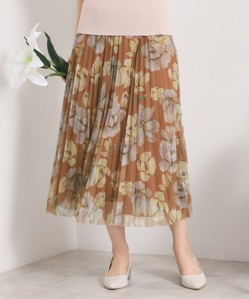 コーディネートの主役になる存在感のある花柄スカート。
