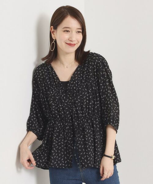 シャーリング使いのカジュアル感に、小花柄でちょっぴり甘さをプラス♪