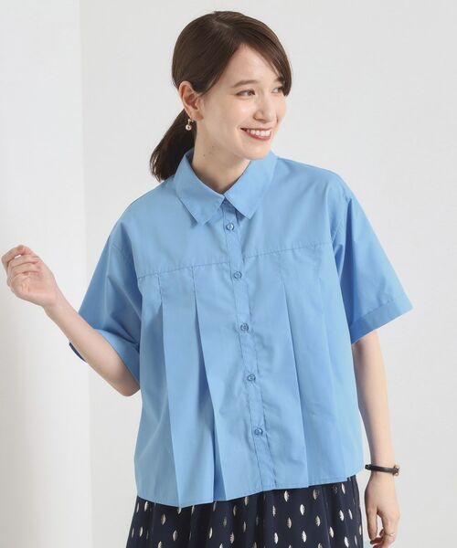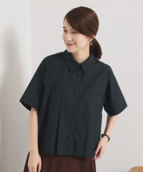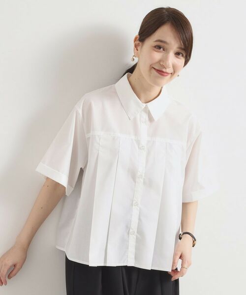 タックプリーツデザインがきちんと感も演出できる大人な雰囲気の短丈シャツ。