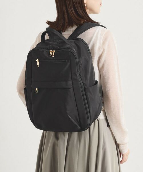 フロント上部のファスナーポケットは浅め仕様なのでスマホやパスケースなどサッと出し入れしたいアイテムの収納に便利♪