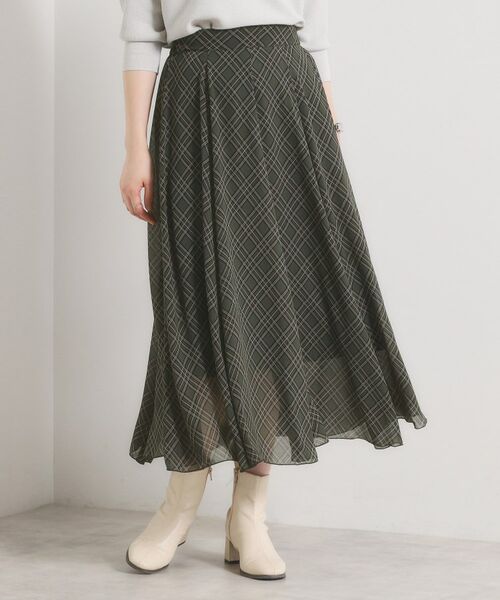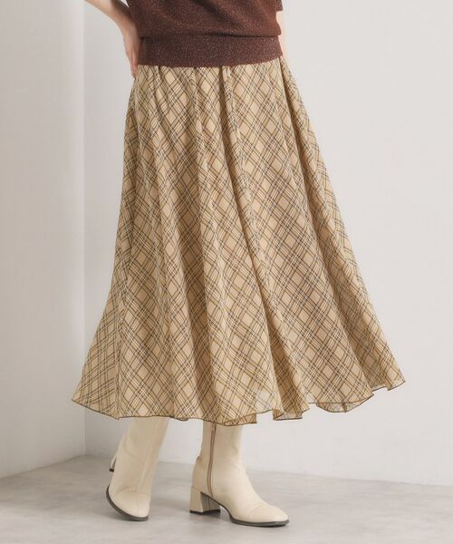 ふんわり軽やかなシアー素材のチェック柄スカート。