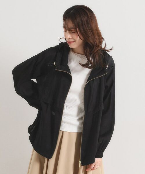ほんのりスポーティー感のあるフード付きブルゾン。