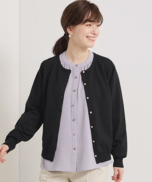 ベーシックなクルーカーディガンは季節の変わり目に持っておきたいアイテム。