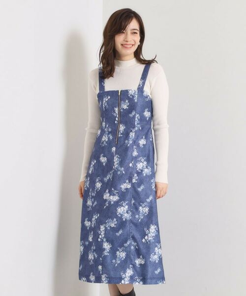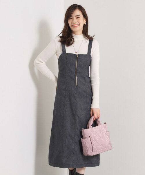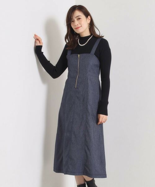 デニム風のポリエステルツイル素材を使用したジャンパースカート。