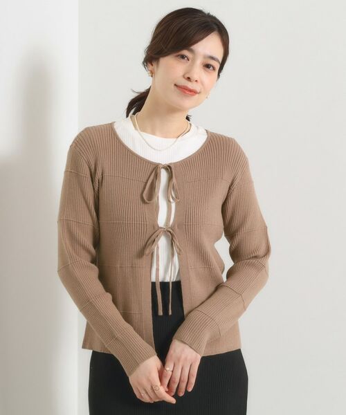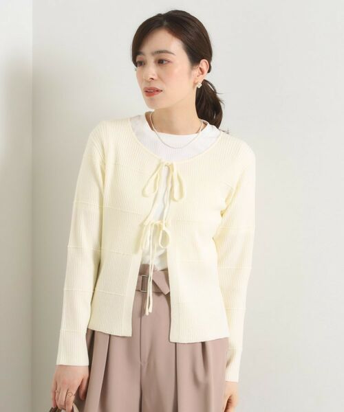 フロントのリボンを結べば、タンクトップやキャミソールと合わせてプルオーバーとしてお使いいただけます。