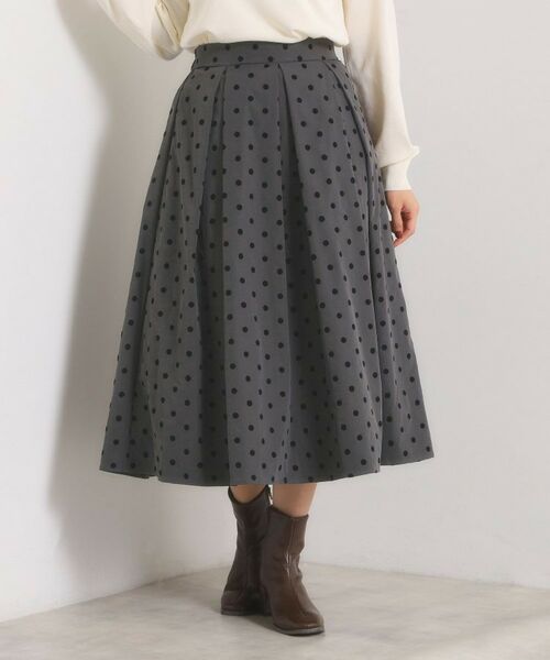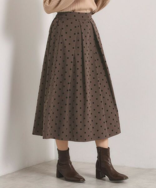 品あるレディなスタイルが叶うドット柄のタックスカート。