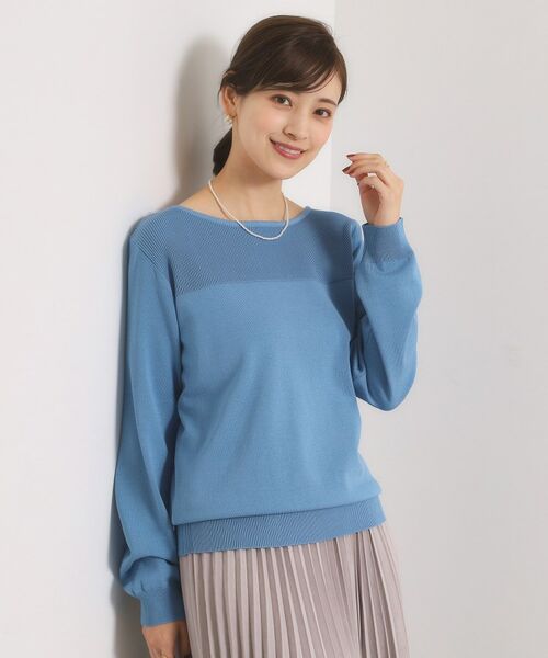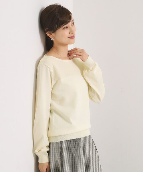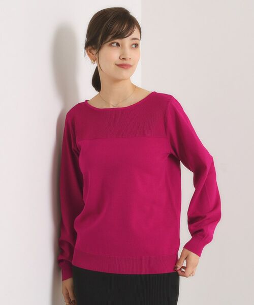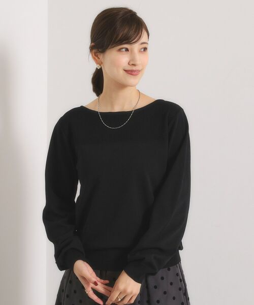 ボートネックがデコルテラインをすっきりと綺麗に見せてくれます。
