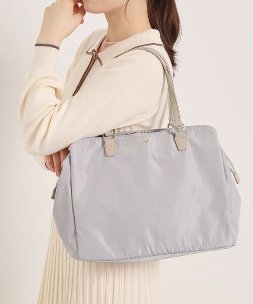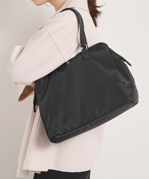ポリエステル生地の本体に付属合皮を合わせて、オンオフ使えるスマートな印象に。