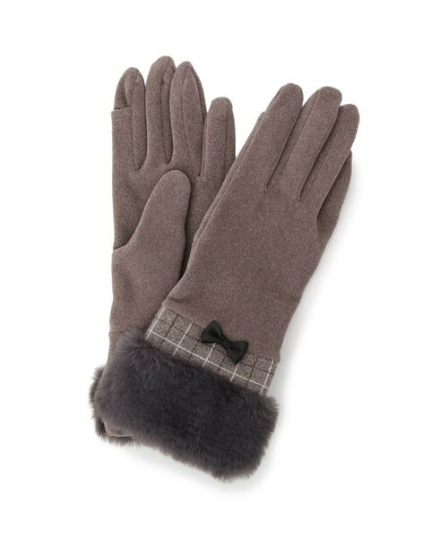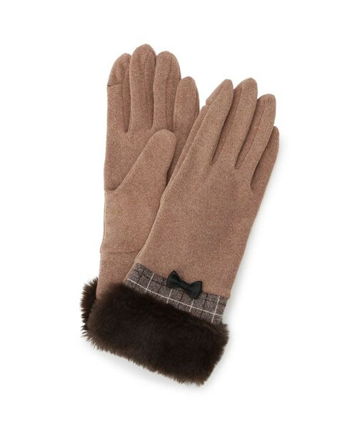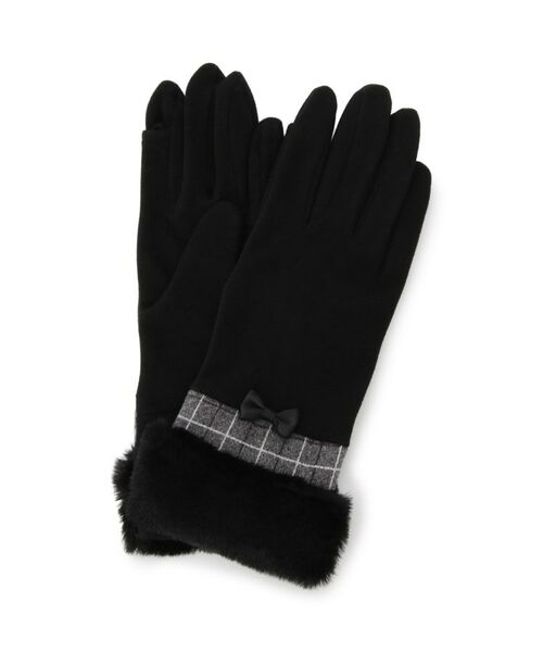 カフス部分はチェック生地×フェイクファーの上品な切替で、小振りのリボンテープもポイントです。