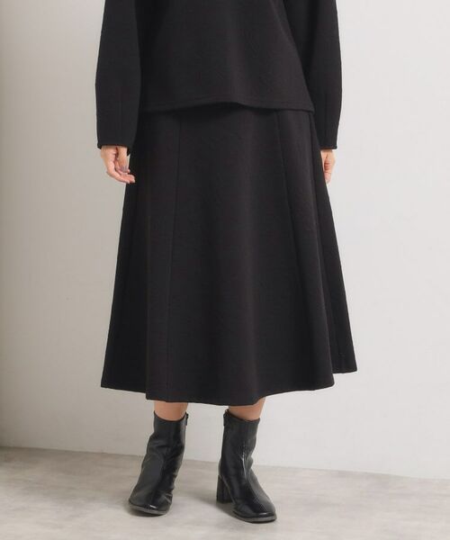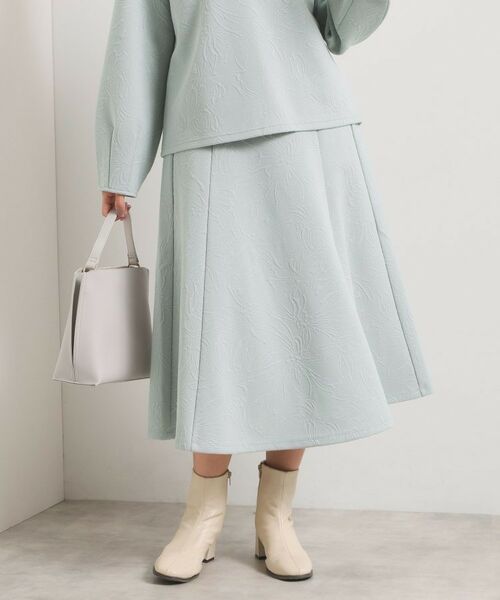 フロントにギャザーやタックを入れないことで、ウエスト周りをすっきりとさせ、かつ重たくならない様にしています。