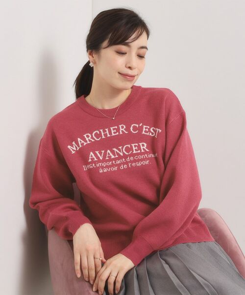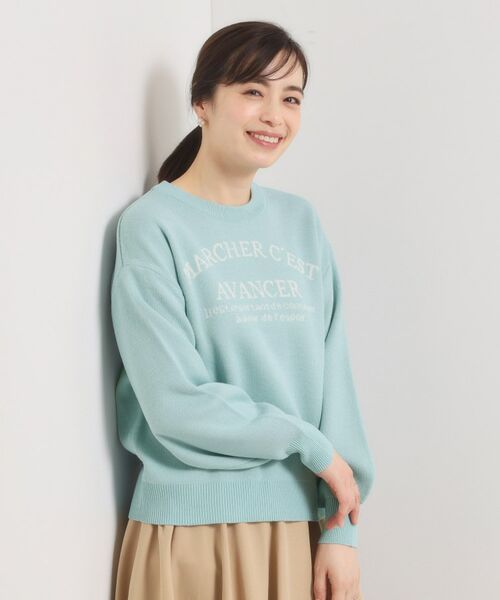 フェミニンなスタイルにも合わせやすいロゴニット。