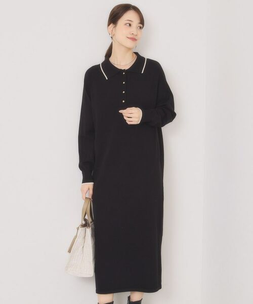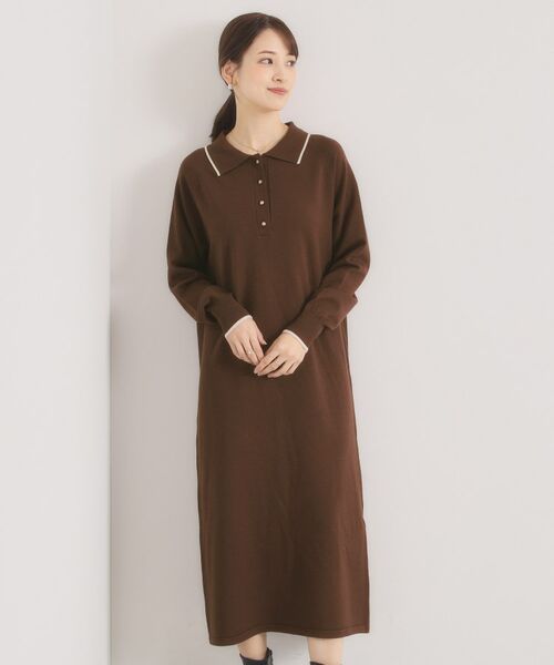 一枚で簡単にトレンド顔になれるポロ衿デザインのニットワンピ。