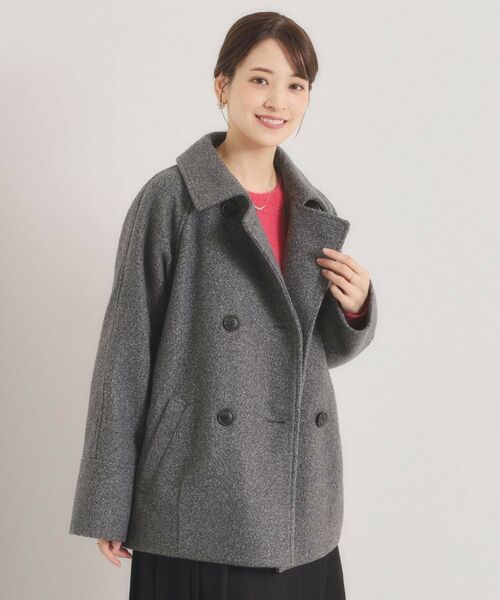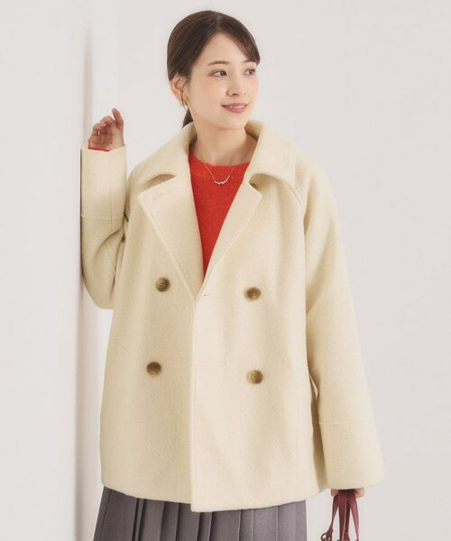 トレンドのブークレー素材を使用したミディアム丈ダブルコート。