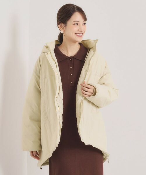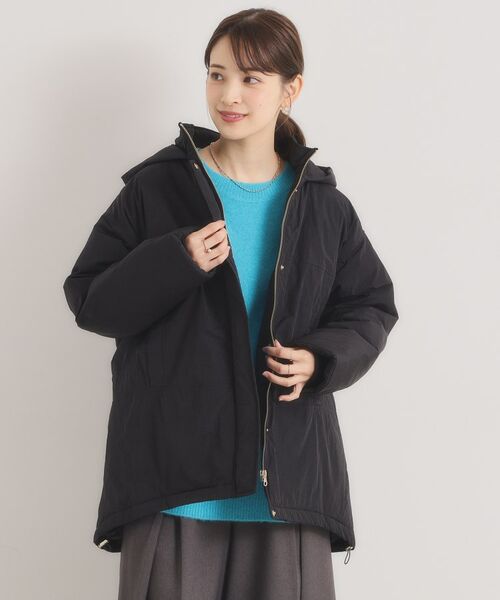 スタンド衿にフード付きなので首周りの防寒対策も◎