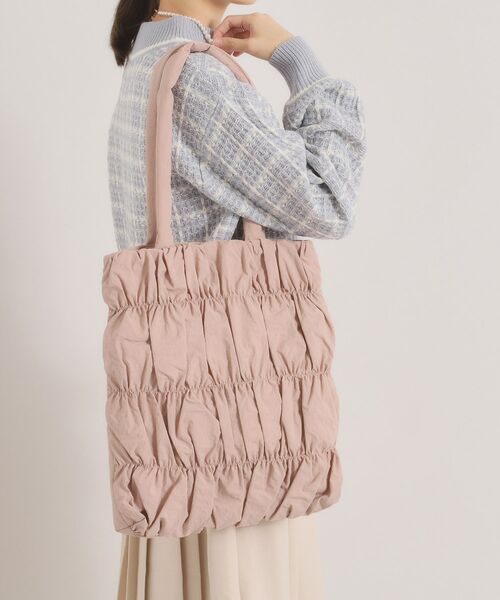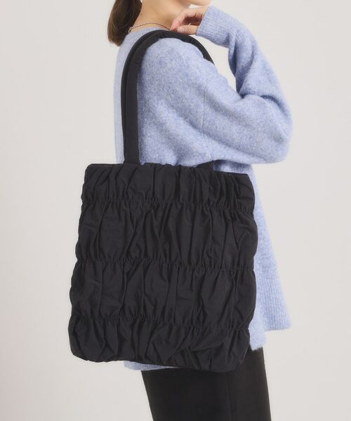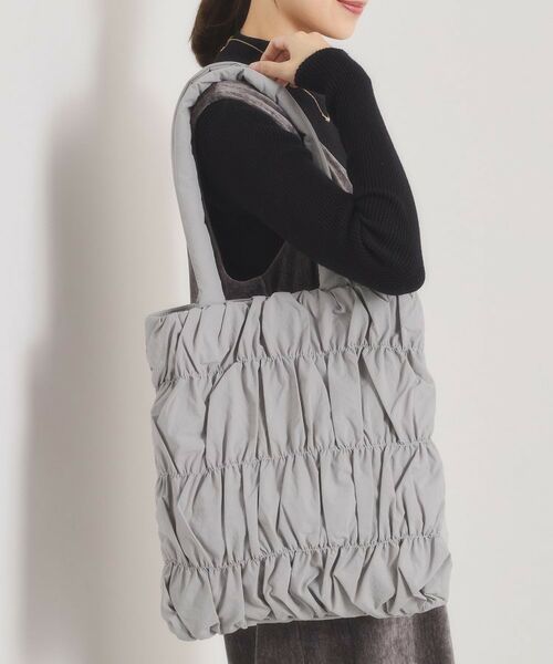 ワッシャー素材×ギャザーデザインでトレンド感のあるフラットトート。