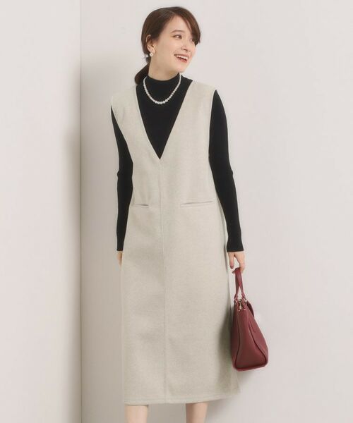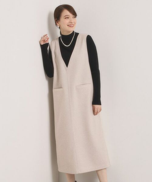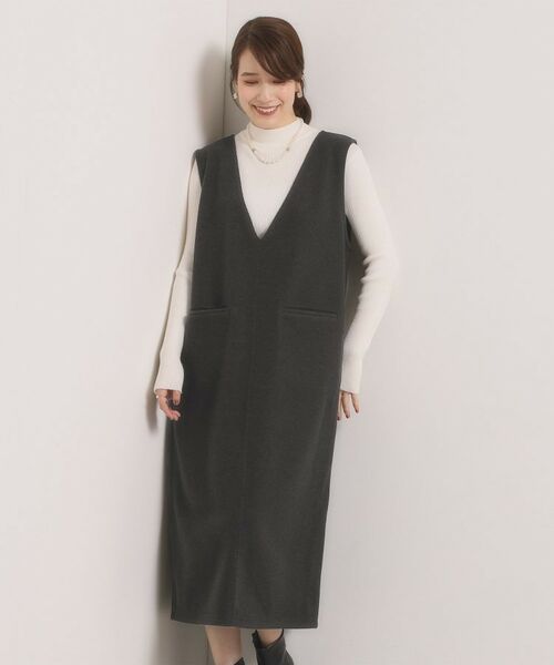 深めのVネック開きが大人な印象で胸元をすっきりと見せてくれます。