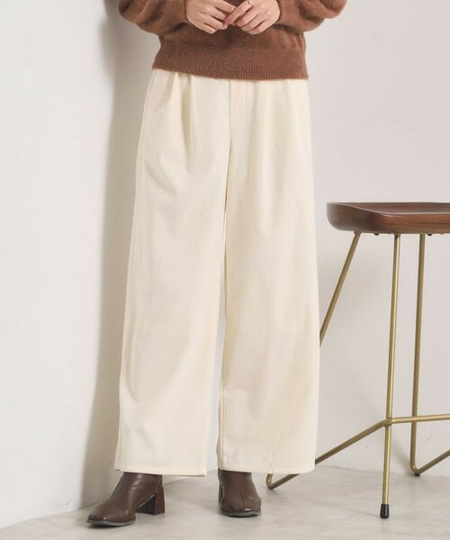 リラックス感のあるワイドシルエットが可愛いコーデュロイパンツ。