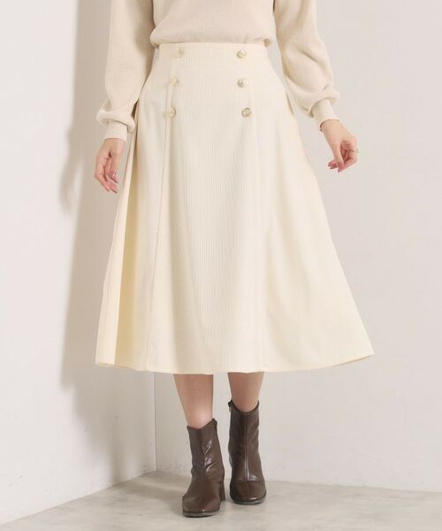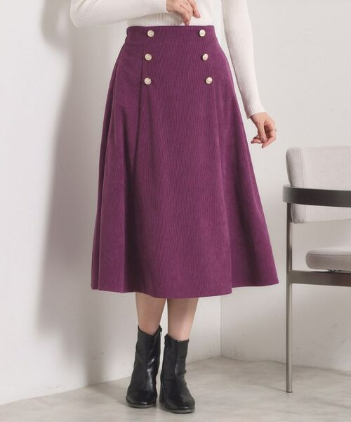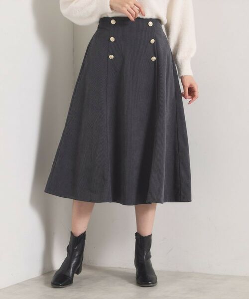 フロントのゴールドボタンがアクセントのコーデュロイスカート。