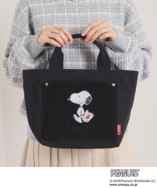 ふわふわモコモコのボア素材のフロントポケットには大きなキャラクター刺繍が♪