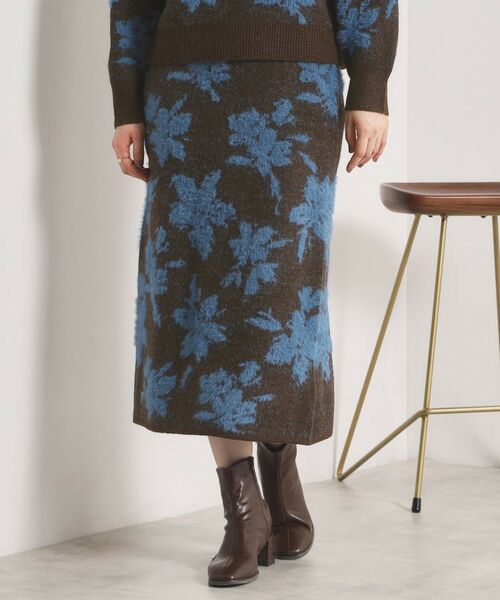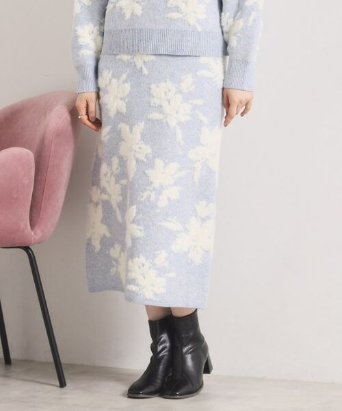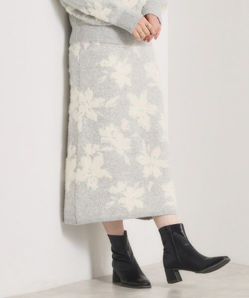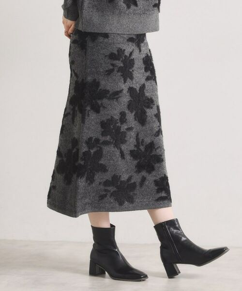 フェザーヤーンで表現したふわふわの花柄が可愛いジャカードニットスカート。