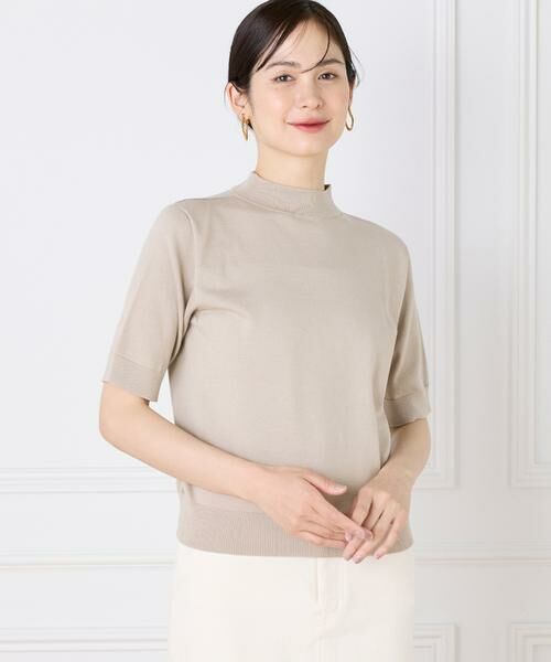肌触りが良く、しなやかな光沢を持った、上質な超長綿を使用しております。 やや低めのハイネックデザインと、長めの5分袖が上品な印象を与えるニットTOPS。また、ホールガーメントで編み立てられており着心地もストレスフリーです。素材と着心地にこだわったイッツのベーシックニットの一枚です。・水洗い可■素材■水源確保のための環境破壊が問題になるほど綿花栽培での水の存在は必要不可欠ですが、イスラエル綿花畑は点滴灌漑が有名で乾燥地帯にあるイスラエルで水のロスを限りなく少なし効率良く栽培しています。油分を含んだ超長綿は肌触りもよくしなやかな光沢をもっています。