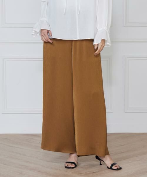 さらっとした楊柳素材を使用したリラックス感のあるイージーパンツ。ウエストはインゴム&コードで調節可能。楊柳の立体感と光沢感、ドレープ感を生かしたシルエットで、コーディネートにアクセントをプラスしてくれる、楽ちんキレイなアイテムです。・水洗い可■素材■程よい薄さのポリエステルの楊柳素材です。さり気なく上品な光沢感とドレープ感があり、さらっとした肌ざわりと楊柳の立体感のある表情が特徴の素材です。