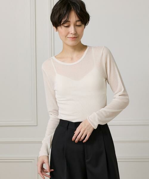細い糸で編み立てることで程よいシアー感を表現したテレコ素材を使用したロングスリーブプルオーバー。丸編み機で編みたてた素材のため脇に縫い目がなく着心地も◎。