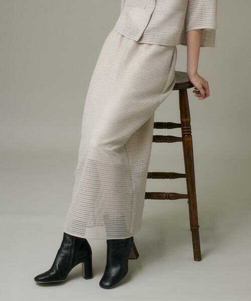 スクエアレース柄がモードな雰囲気を演出する、Iラインシルエットのスカート。ペチ付きなのでスカート単品としてももちろん、ペチを外してパンツとのレイヤードスタイルにも活躍します。ウエストはゴム使用なので着用も楽ちん。同素材のシャツとのセットアップスタイルもおすすめです。