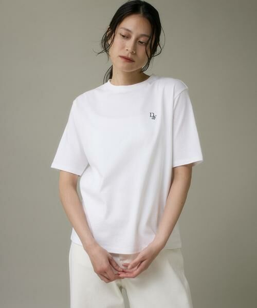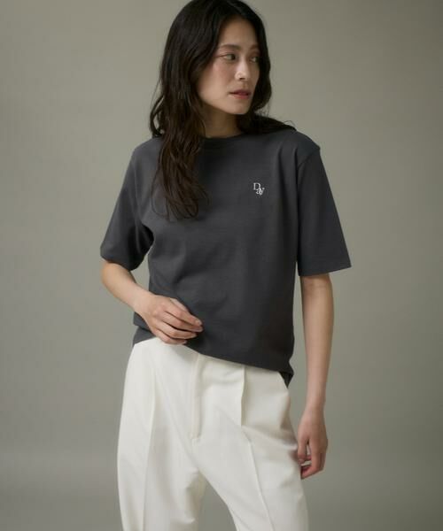 胸元にオリジナルロゴ「Day」の刺繍を入れたクルーネックのTシャツ。主張しすぎないサイズのワンポイントロゴは大人の日常着にぴったりです。5分袖で腕回りをカバーし、袖を捲っても短くなりすぎない丈にしております。