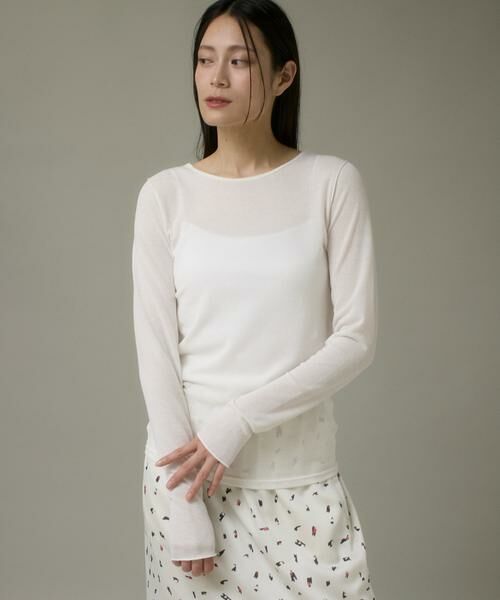 いまや定番アイテムとなったシーアーカットソー。さりげない凹凸感と程よいシアー感が印象的なテレコ素材を使用し、さらっとした肌触りでシーズンレスで着用して頂けます。シャツやニットのインナーにプラスするだけでこなれた印象に。レイヤードスタイルのアクセントになるようやや長めの袖丈にし、袖口、アームホール、センターバックはメロー仕上げにし、1枚着のトップスでも成立するようデザインポイントをつけました。色違いで欲しくなる便利アイテムです。