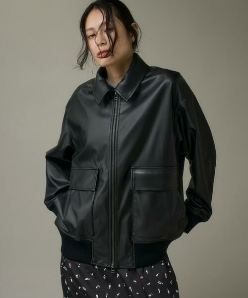 トレンドのレザーアイテムを環境にやさしいフェイクレザーで表現したブルゾン。衿部分に付属されたタブを使用してスタンドカラーにもアレンジ可能。袖口と裾口にはリブ付属を使用することでスポーティな要素も取り入れ、レザーのもつハードな雰囲気を柔らかく、デイリーに取り入れやすいブルゾンに仕上げました。