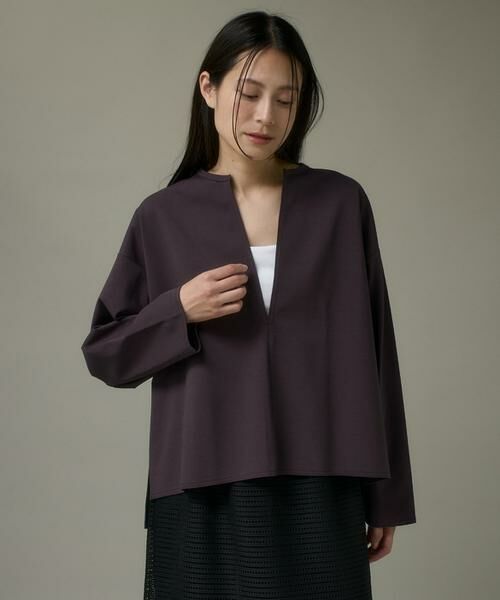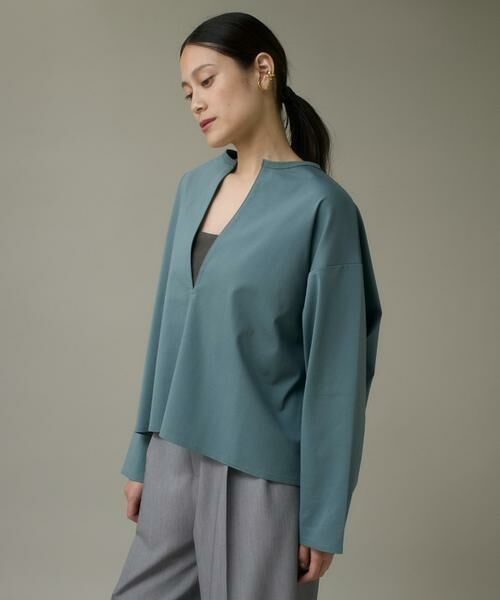 深めのキーネックがリラクシーで印象的なオーバーサイズカットソー。張り感のある素材でフォルムが出てサッと着るだけでこなれ感を演出します。キャミソールやシアーカットソー、キャミワンピの上など様々なレイヤードスタイルが楽しめます。袖口をクルっとラフにまくるのも◎カジュアルになりすぎず大人も着やすいニュートップスです。
