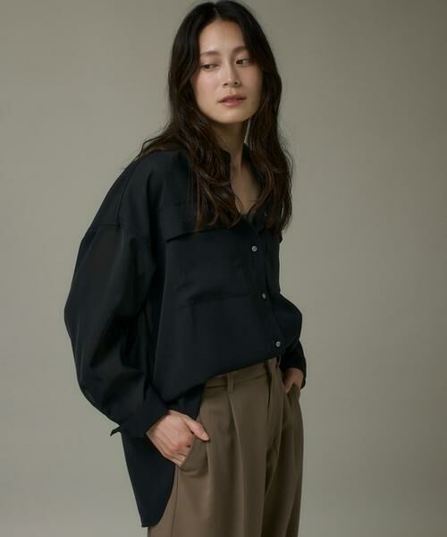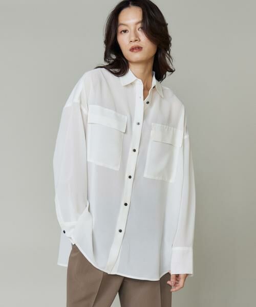 ライトな羽織としても活躍するオーバーサイズのシアーシャツ。梳毛見えのシアー素材を使用する事で秋の気分を盛り上げてくれる表情感に仕上げました。袖口に釦を2個付けることにより袖巾が調節可能です。ラフに着たい時は袖巾を広く、きちんと着たい時はそで幅を狭くする事で、異なるシルエットを楽しめます。