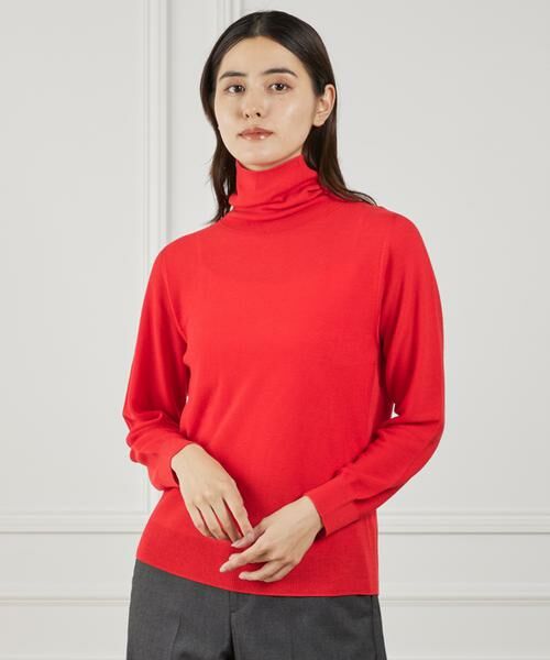 18Lというスーパーハイゲージのホールガーメント機で編み立てられた、他ではあまり見ないタートルネックニット。ベーシックなデザインながらも、身頃の凹凸感や、両脇に入れたアイレット&寄せ目などのアクセントを効かせている。よく見ると分かる、衿リブ・胸・裾に入れられた成型により、着用時のシルエットに拘った匠の技が光る逸品。裾は編み組織を工夫し腰回りのフィット感を軽減させている。ホールガーメントならではの着心地が楽しめるイッツの定番ニット。