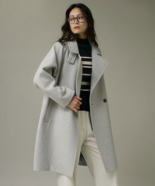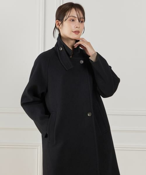 衿元から袖口にかけて、少し前にふったラグランスリーブがポイントのステンカラーコート。ひざ下丈で暖かく、シンプルなシルエットはインナーを選ばす、デイリーに着用していただけます。襟元はタブ付きでスタンドカラーにも変化可能。スタンド、ステン、チェスターなど、3パターンの襟元が楽しめるコードです。