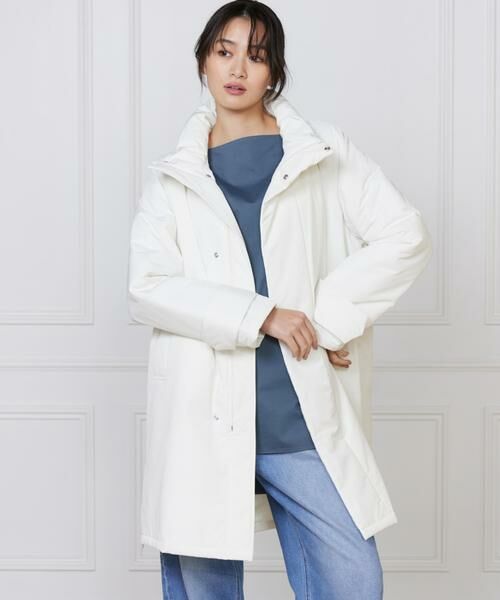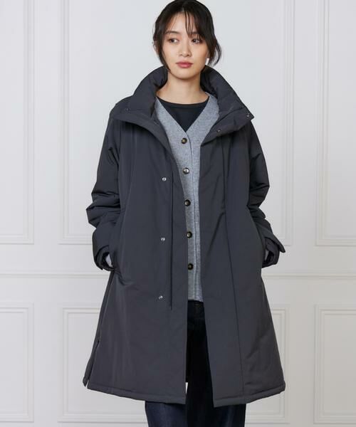 高めに設定したスタンドカラーと程よいAラインシルエットが上品さとカジュアルさをバランス良くミックスさせ、ONにもOFFにも合わせやすいデザインに仕上げました。ポケット位置を高めに設定する事でスタイルアップ効果もあり、両サイドに施したファスナーでスリットデザインも楽しめます。