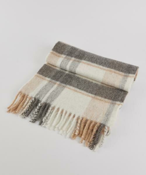 大柄のチェックがアクセントになるストール。鮮やかなカラーが、コーディネートのポイントになってくれます。ギフトにもおすすめのアイテムです。